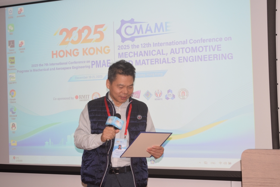 The 12th International Conference on Mechanical, Automotive, and Materials Engineering (CMAME 2025) was successfully held at the City University of Hong Kong from December 19th to 21st, 2025. The conference attracted 80 participants and fostered a vibrant exchange of ideas. We extend our sincere gratitude to the organizing committee for their dedicated efforts and to all attendees for their valuable contributions and engagement.